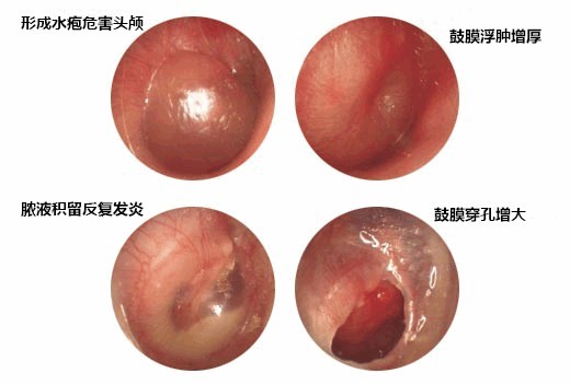 中耳炎疾病常以耳内间断或持续性流脓、鼓膜穿孔、听力下降为主要临床表现,但严重时可引起颅内、颅外的并发症。